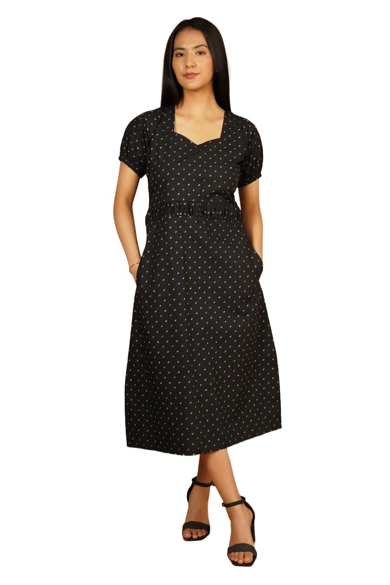 Premium Cotton Black Midi Dress