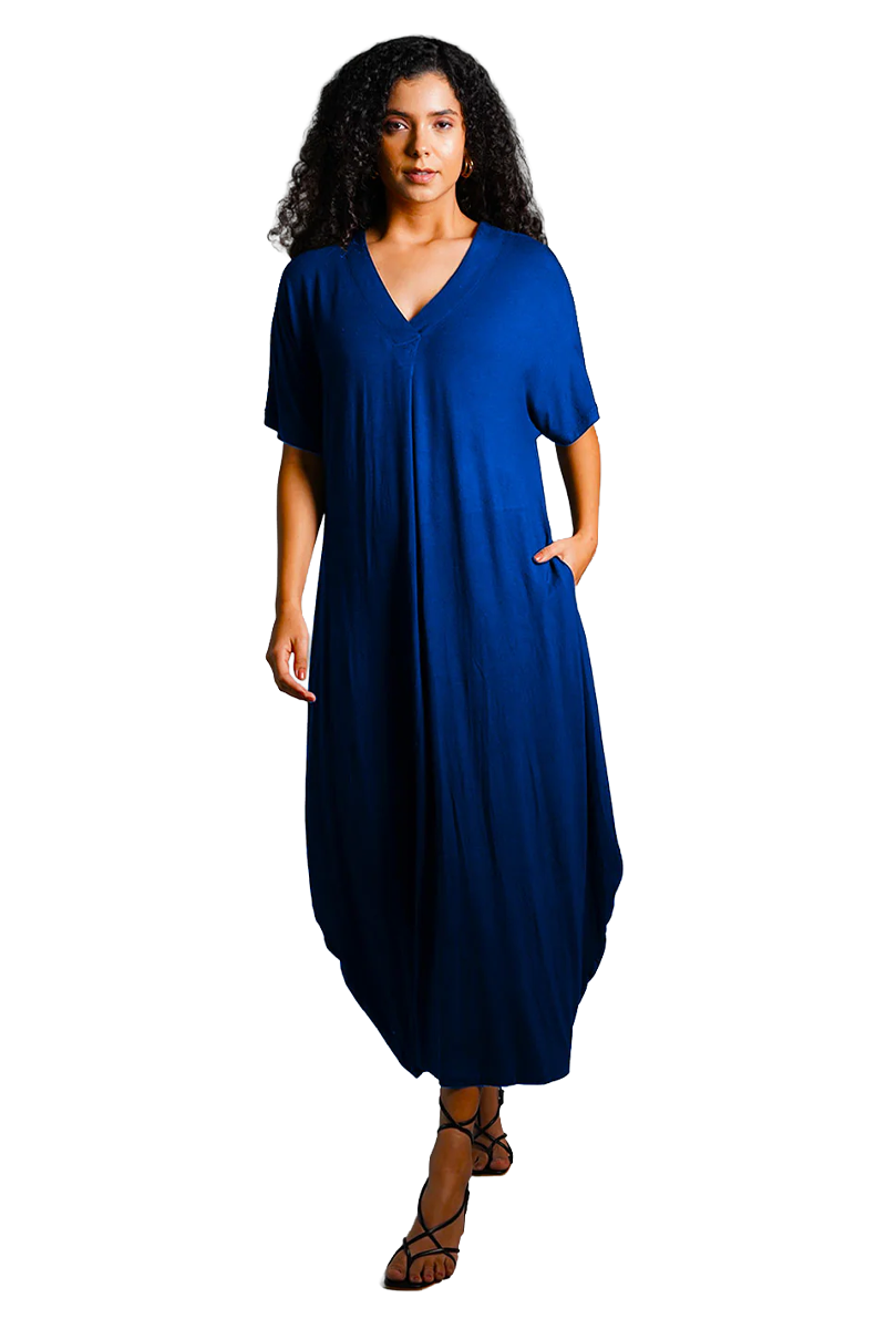Dolman Sleeve Blue Jersey Knit Shift Dress