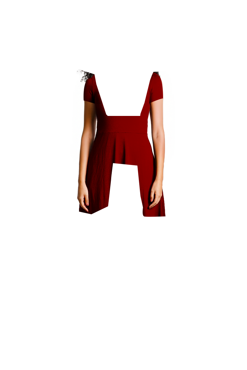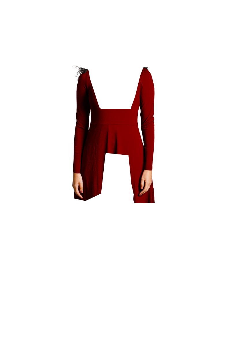 Maroon High Neck Jersey Knit A-Line Dress