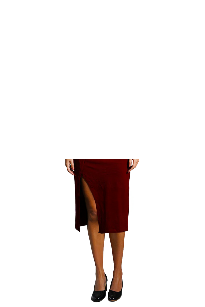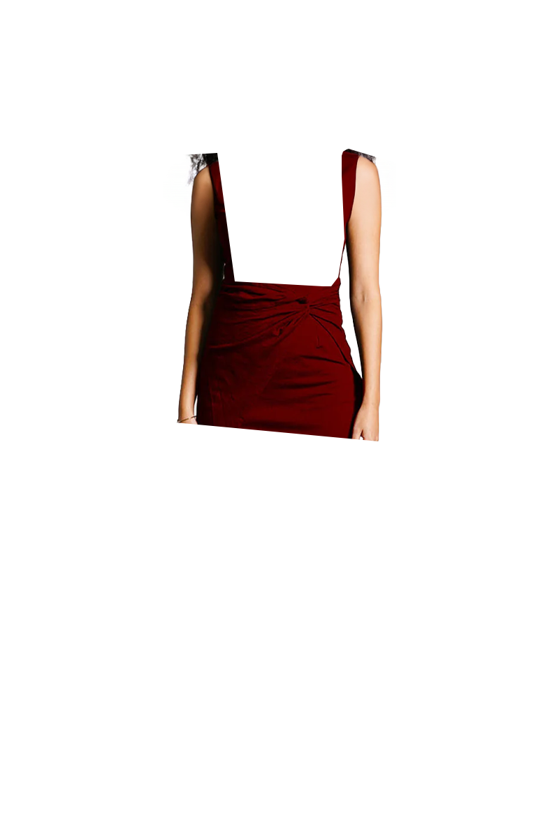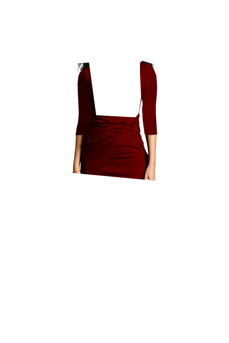 Twist Waist Maroon Cotton Jersey Sheath Dress