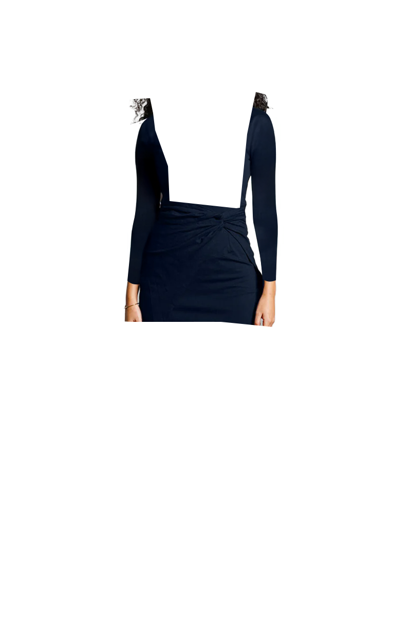 Twist Waist Navy Cotton Jersey Sheath Dress