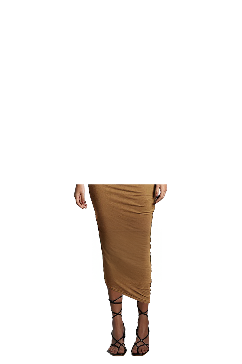Asymmetric Hem Beige Jersey Knit Dress