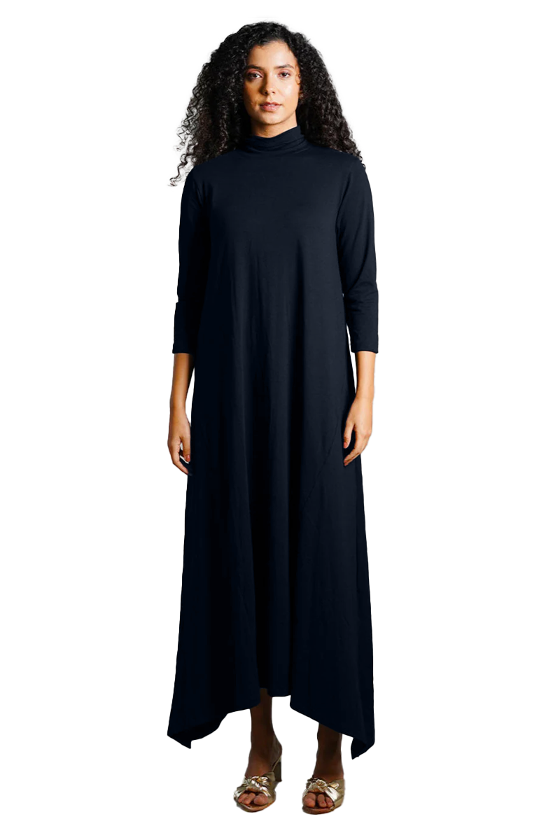 Asymmetric Hem Navy Cotton Jersey Shift Dress