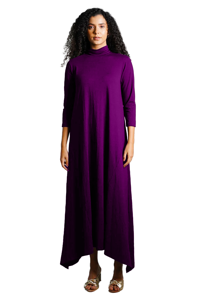 Asymmetric Hem Purple Cotton Jersey Shift Dress