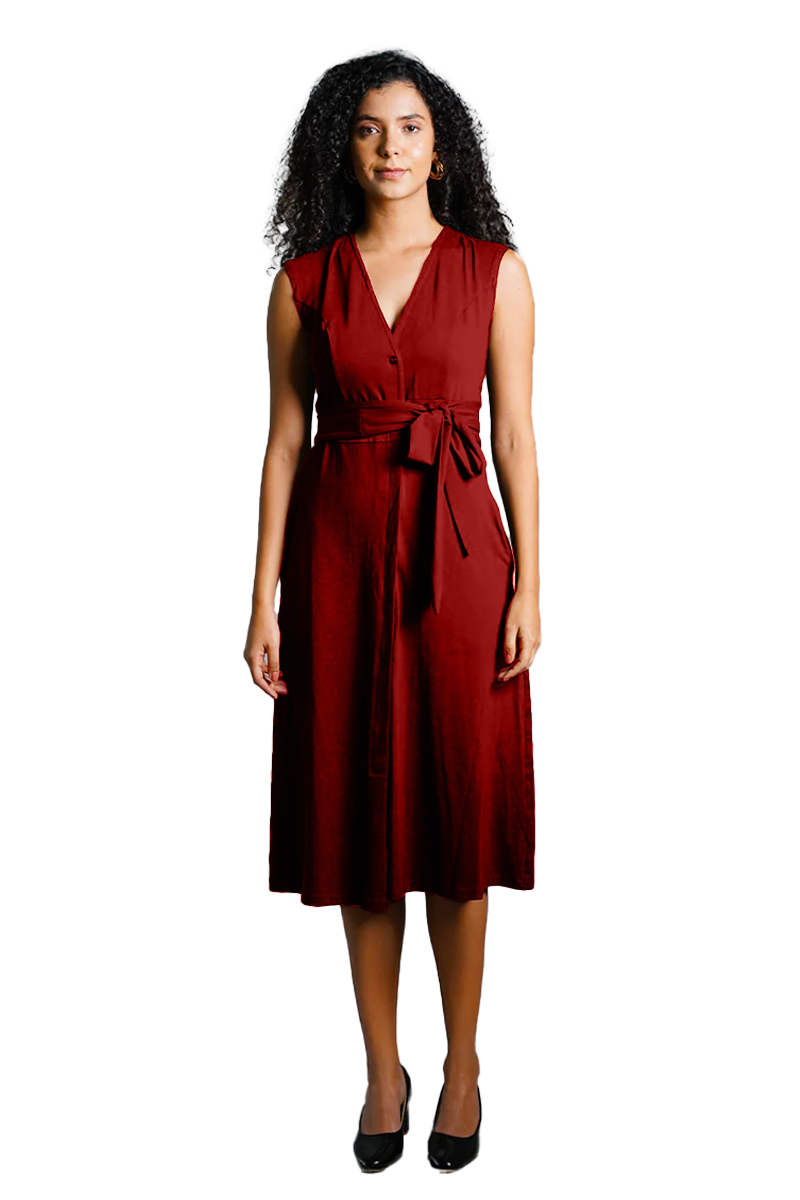 Maroon Cotton Jersey Banded Empire Shirt Dress
