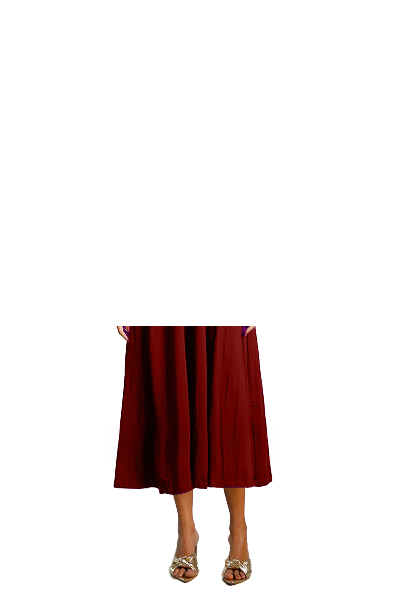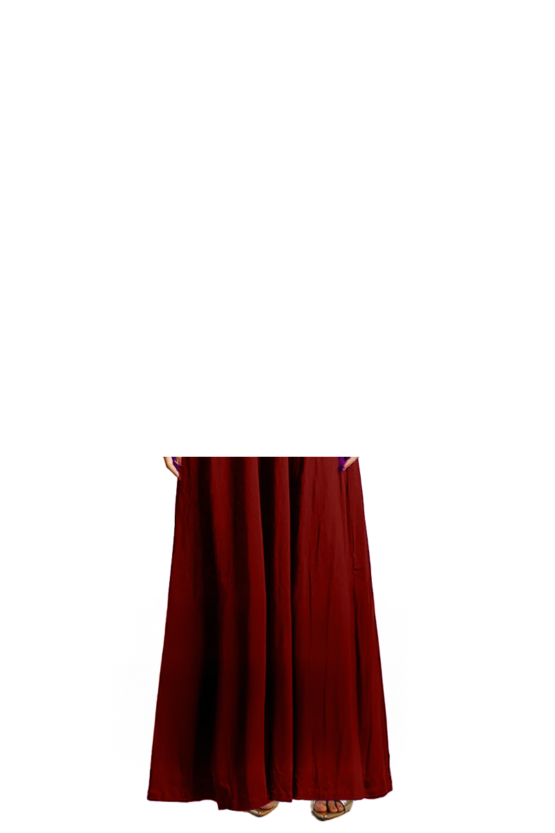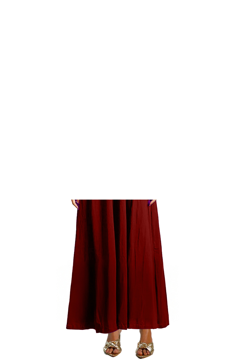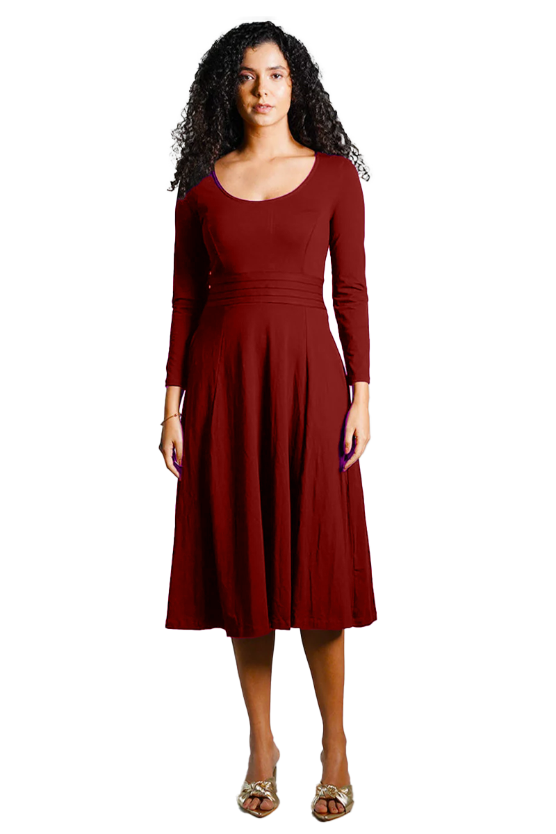 Maroon Cotton Jersey Pleat Waist Dress