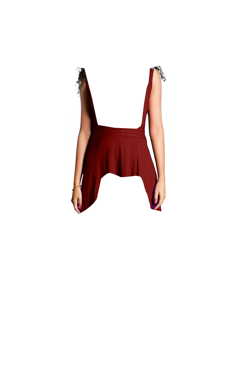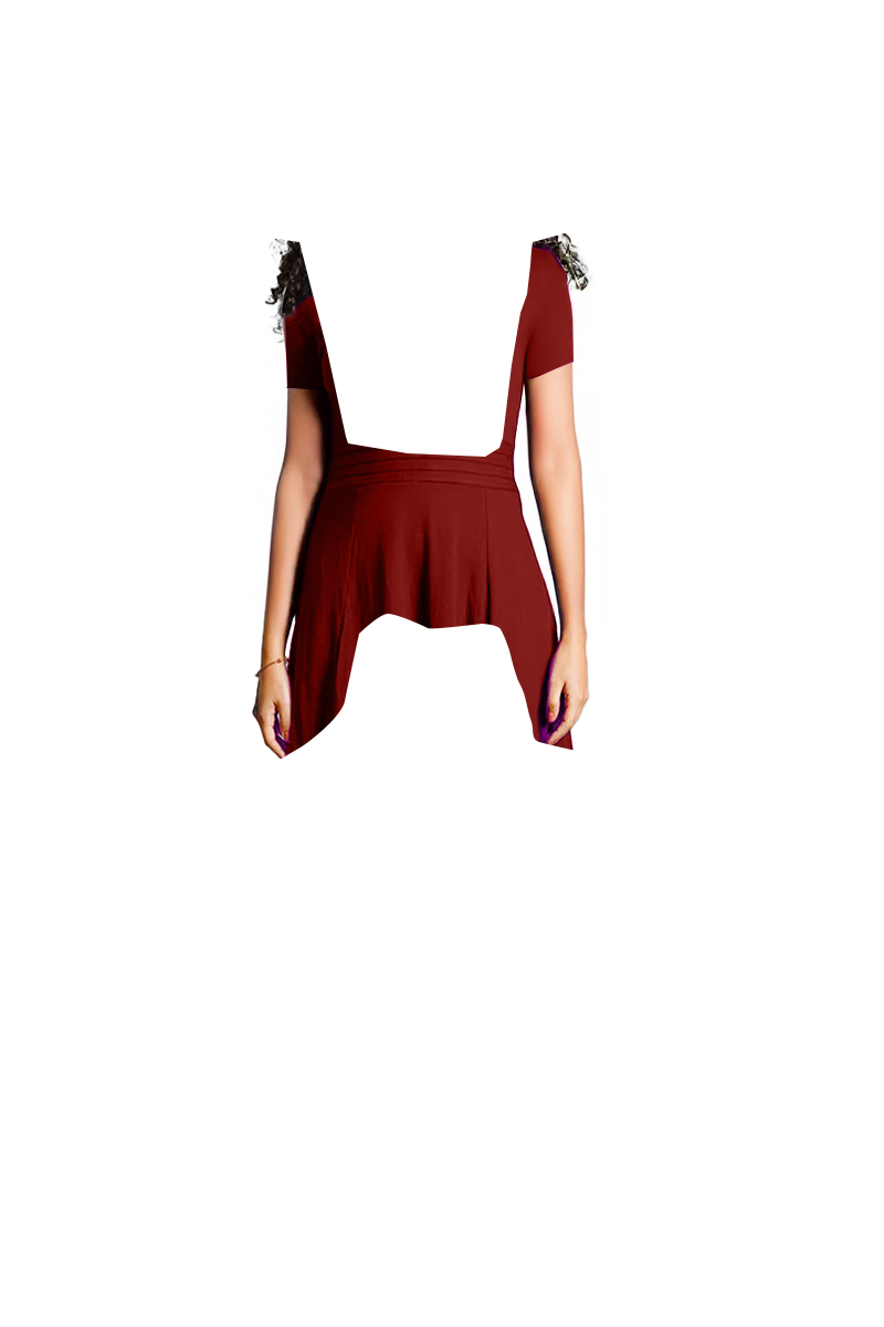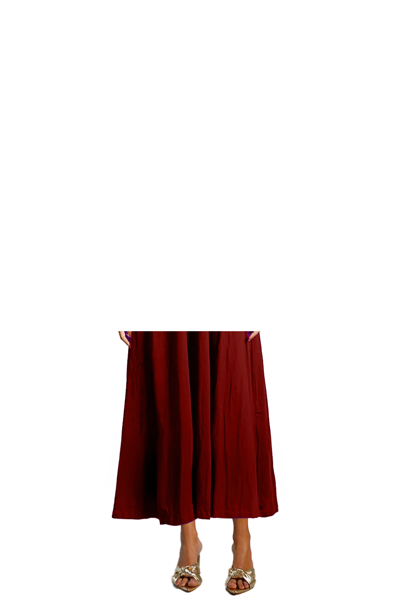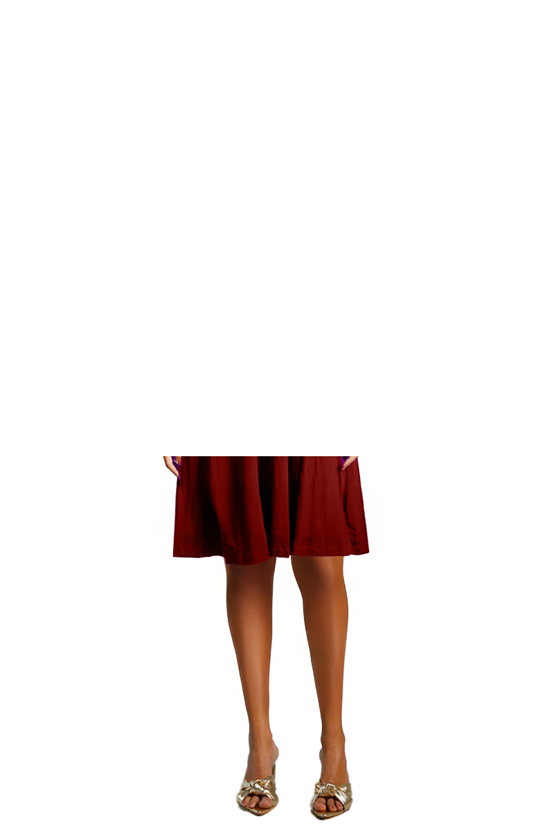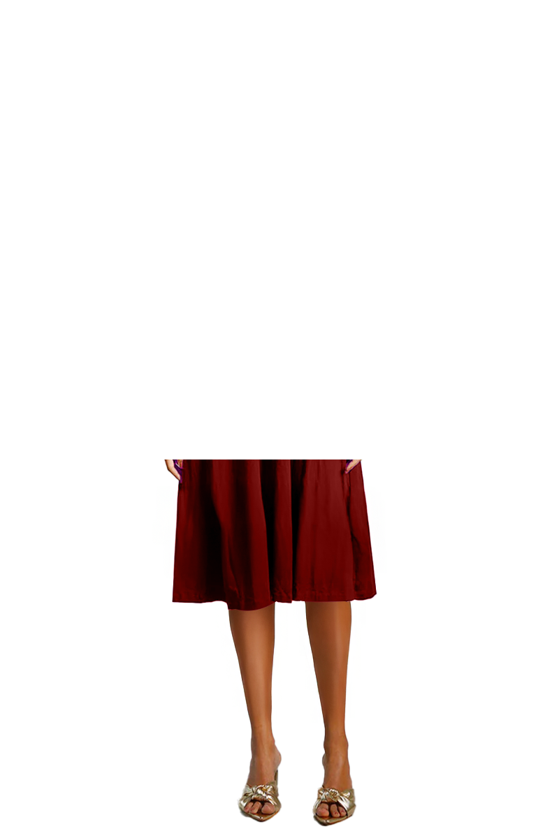 Maroon Cotton Jersey Pleat Waist Dress