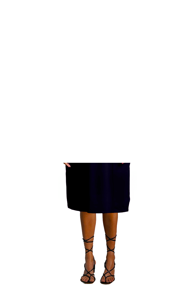Puff Sleeve Navy Cotton Jersey Surplice Dress