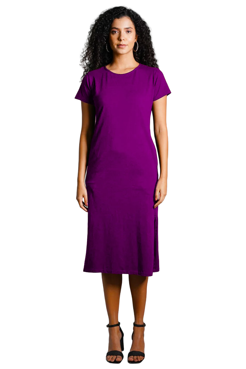 Purple Cotton Jersey Vented Shift Dress