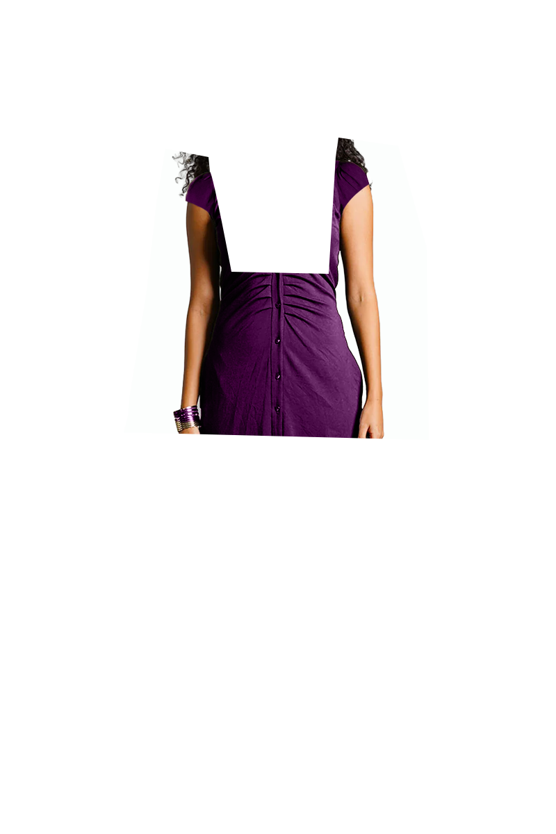 Purple Ruched Cotton Jersey Tie-Back Shirt Dress